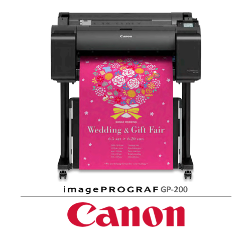 The GP Series is the world's first large format printer with aqueous pigment Fluorescent Pink Ink*. The 24" GP-200 is a 5-color (MBK, BK, C, M, Y) plus Fluorescent Pink Ink large format printer. Equipped with Canon's unique Radiant Infusion which layers the newly developed Fluorescent Pink Ink with other inks on the paper surface during printing creating bright and soft color reproduction. This model is ideal for supporting in-house production of large format prints with increased appeal and visibility in various industries such as retail stores, restaurants, government offices, schools and general companies. The compact design of these printers allow them to easily fit in the small confinements of a classroom or company office without taking up valuable work space. Other features include Secure Print, Direct USB Thumb Drive Printing, Borderless Printing, and Accounting Manager software. Bundled with Canon's poster creation software PosterArtist Lite, users are able to create posters in four easy steps with license free images and templates. These imagePROGRAF GP Series printers are the world's first "PANTONE Calibrated" Pantone licensed for1 "PANTONE PASTELS & NEONS GUIDE Coated"2, which includes fluorescent and pastel colors.
